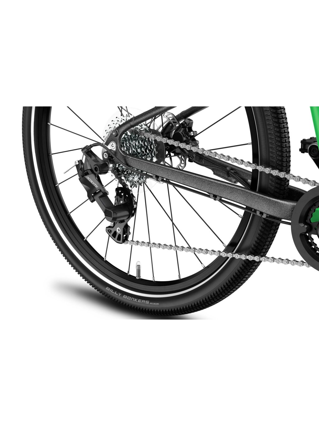 Mimoriadne ľahký detský bicykel so športovým vzhľadom, veľkosť 24 palcov ideálna pre cyklistov od 7 rokov, s kotúčovými brzdami, 8-rýchlostným radením a pneumatikami na rôzne typy terénov.