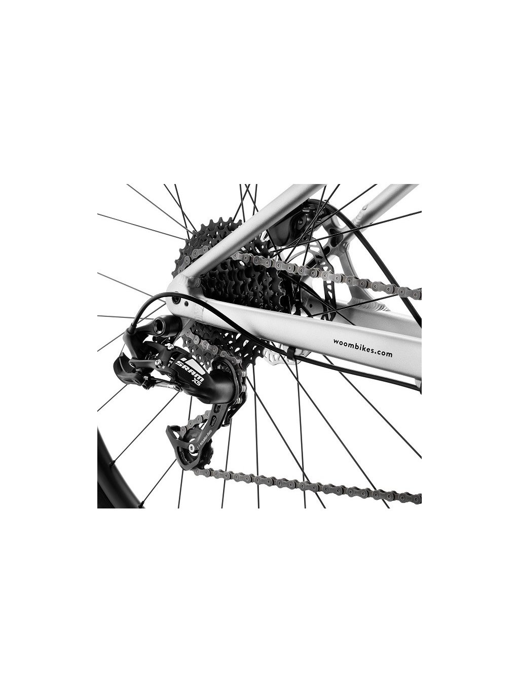 - Kolesá: 20", superľahké dvojkomorové hliníkové ráfiky woom OFF DISCO TEC, hliníkové náboje so zapuzdrenými priemyselnými ložiskami, pevné osky kolies pre čo najvyššiu tuhosť (100 x 15 mm vpredu/135 x 12 mm vzadu), 20 špíc G14 s výpletom s dvojitým krížením, hliníkové niple