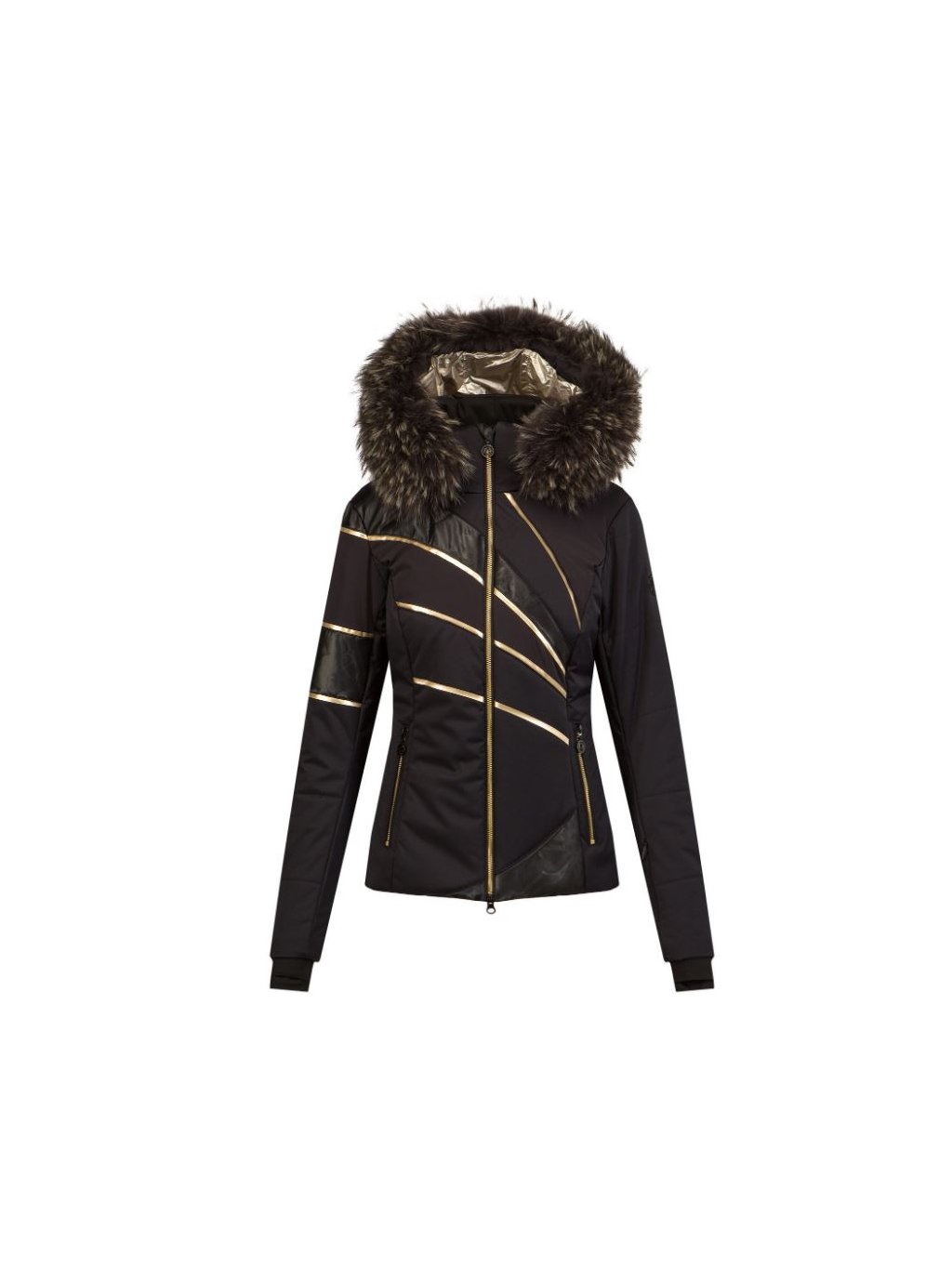 Lyžiarska bunda Dallas disponuje sofistikovaným dizajnom, ktorý sa hrá s dvoma typmi materiálov. Matno-lesklá kombinácia materiálov je hitom tejto sezóny, čo sa prejavilo aj pri navrhovaní dizajnu tejto bundy. Nylonový nepremokavý zvršok s vodným stĺpcom až 20 000mm vás udrží nie len v teple ale ja v suchu, zatiaľ čo priedušnosť materiálu (20 000 g/m2/24h) zabezpečí príjemnú tepelnú reguláciu tela počas lyžovačky aj mimo nej. Dodatočnú ochranu zabezpečuje aj systém Recco, ktorý je súčasťou bundy. Dizajn bundy je obohatený o dynamické pásy vo farbe "ice gold". Bočné strečové vložky zabezpečujú nie len extra pohodlie pri pohybe, ale aj skvele kopírujú ženskú líniu, čo opticky ženskú postavu zoštíhľuje. Bunda má dve bočné vrecká na ruky a šikovne do švov integrované vrecko na skipas na rukáve. Teplý golier spolu s odnímateľnou kapucňou z mäkkého džersejového materiálu tvoria dokonalú dvojicu na vytvorenie nezameniteľného a technicky prepracovaného lyžiarskeho looku. Logo značky Sportalm sa nachádza na viditeľnej časti bundy.
