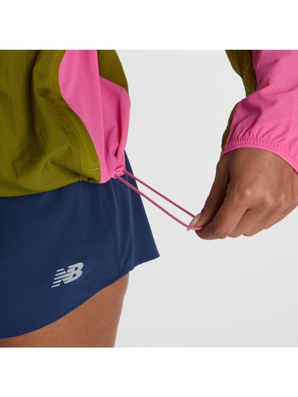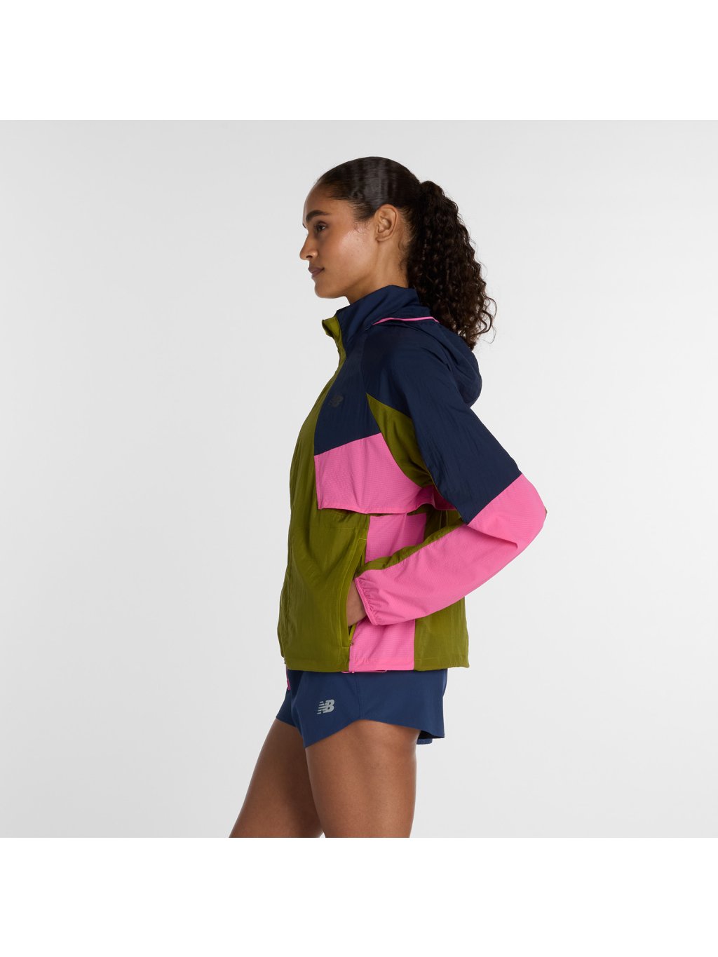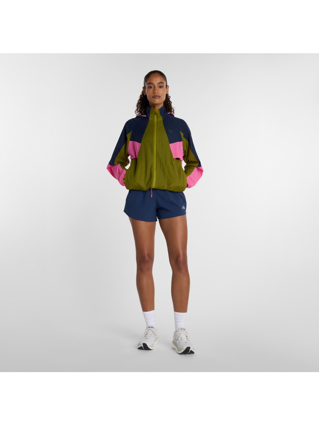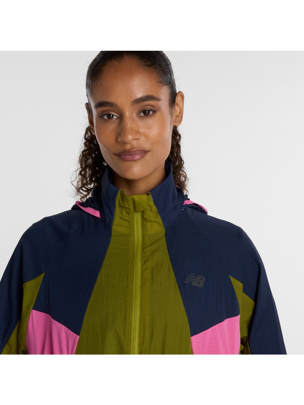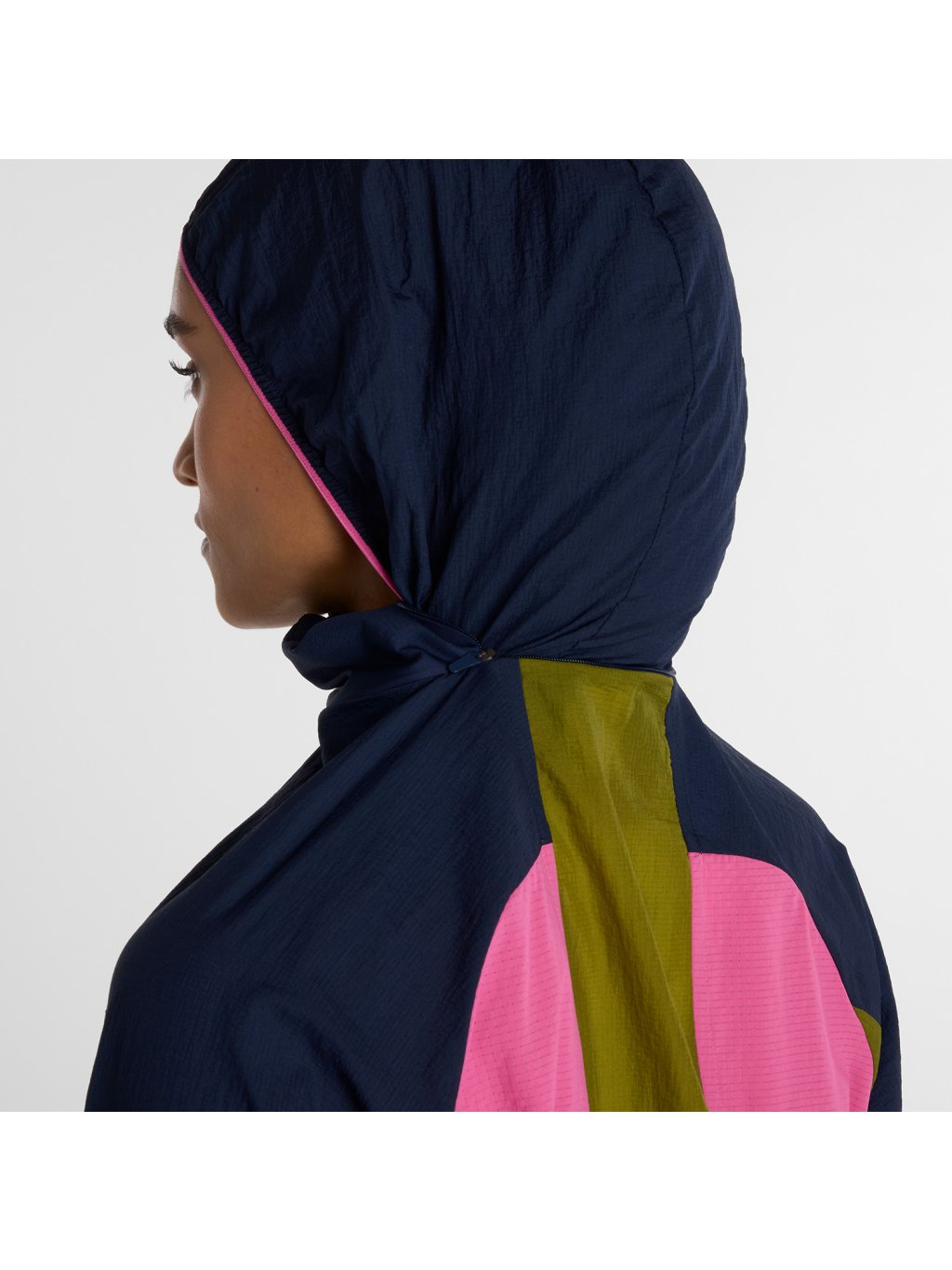 Bunda RC Jacket W spája špičkové materiály s technickými vlastnosťami, čo z nej robí univerzálny kúsok nielen na beh. Má ľahko zbaliteľnú kapucňu so zabezpečeným zipsom a dlhé rukávy s elastickými manžetami pre pohodlie a ochranu. Zipsové vrecká na ruky poskytujú praktické úložisko, zatiaľ čo baliteľný dizajn umožňuje jednoduché prenášanie. Povrch s odolnou vodoodpudivou úpravou (DWR) chráni pred slabým dažďom. Ľahký recyklovaný nylon a Ultra Light tkanina zaisťujú mobilitu a voľnosť pohybu. Minimalistický Flying NB logo dopĺňa športový štýl bundy.