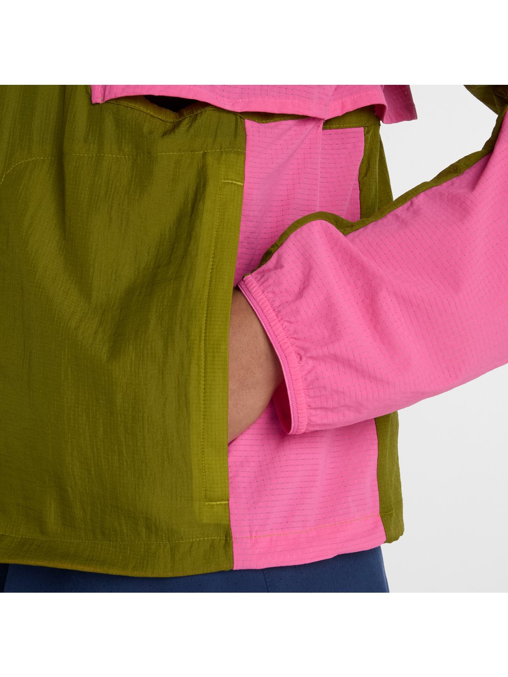 Bunda RC Jacket W spája špičkové materiály s technickými vlastnosťami, čo z nej robí univerzálny kúsok nielen na beh. Má ľahko zbaliteľnú kapucňu so zabezpečeným zipsom a dlhé rukávy s elastickými manžetami pre pohodlie a ochranu.