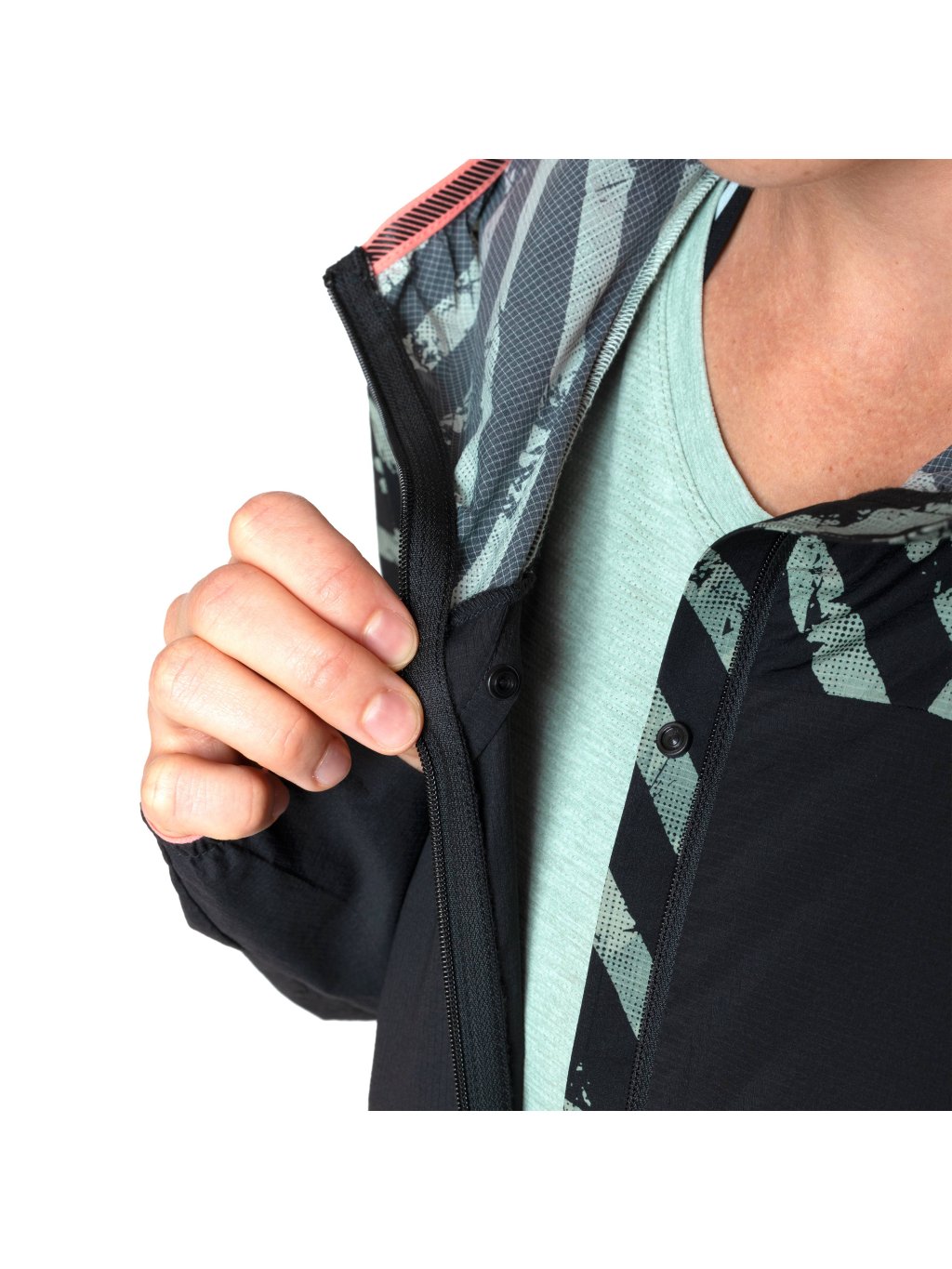 Minimalistická vetrovka pre trailové bežkyne. Táto ľahká 115 gramová vetrovka Trail Wind W bez PFAS poskytuje dokonalú ochranu proti chladu a nepriaznivému počasiu pre ambiciózne trailové bežkyne. Vďaka malému objemu pri zbalení sa pohodlne zmestí do každej bežeckej vesty, opasku alebo vrecka kraťasov. Ergonomický strih a strečový materiál zabezpečujú plnú slobodu pohybu, pričom dodatočný objem na chrbte umožňuje pohodlné nosenie bundy aj cez kompaktnú bežeckú vestu. Perforácie pod pažami zlepšujú ventiláciu a zaručujú optimálnu reguláciu telesnej teploty počas intenzívnej aktivity. Bundu je možné nosiť pri behu aj úplne rozopnutú, vďaka praktickému patentu na hrudi, ktorý ju bezpečne drží pohromade. Priliehavú kapucňu možno v prípade potreby vyhrnúť a pripevniť, aby pri behu neprekážala.