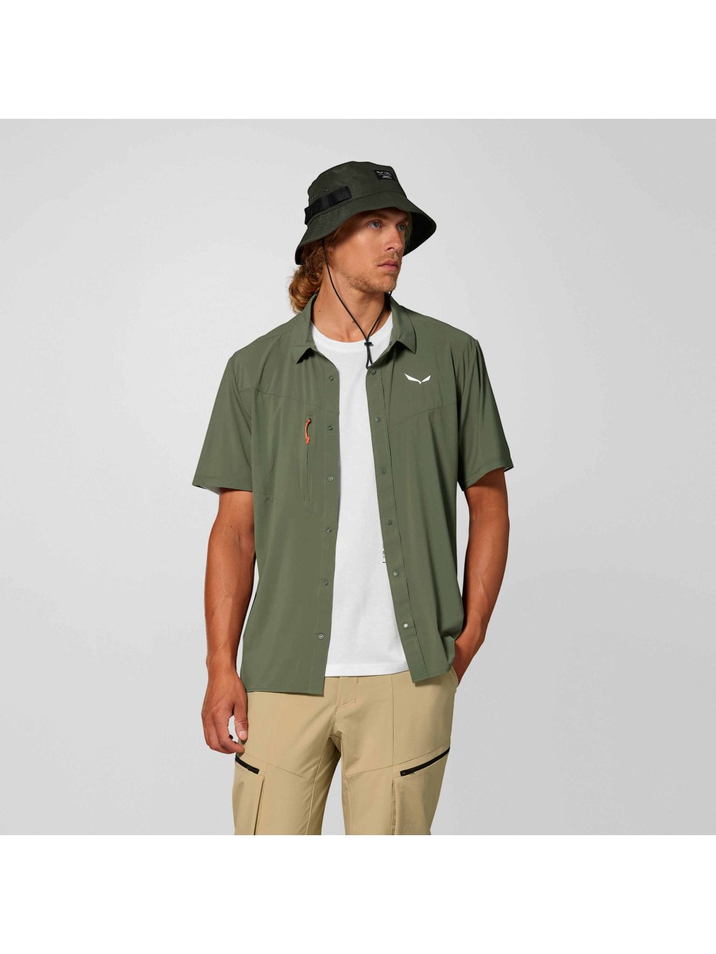 Košeľa má ergonomickú konštrukciu s klapkou na gombíky, zapínanie na gombík a hrudnú kapsu na zips pre bezpečné uloženie drobností. Vďaka sieťovaným podpažným dielom a precíznej konštrukcii rukávov poskytuje pohodlie a ventiláciu počas celého dňa.