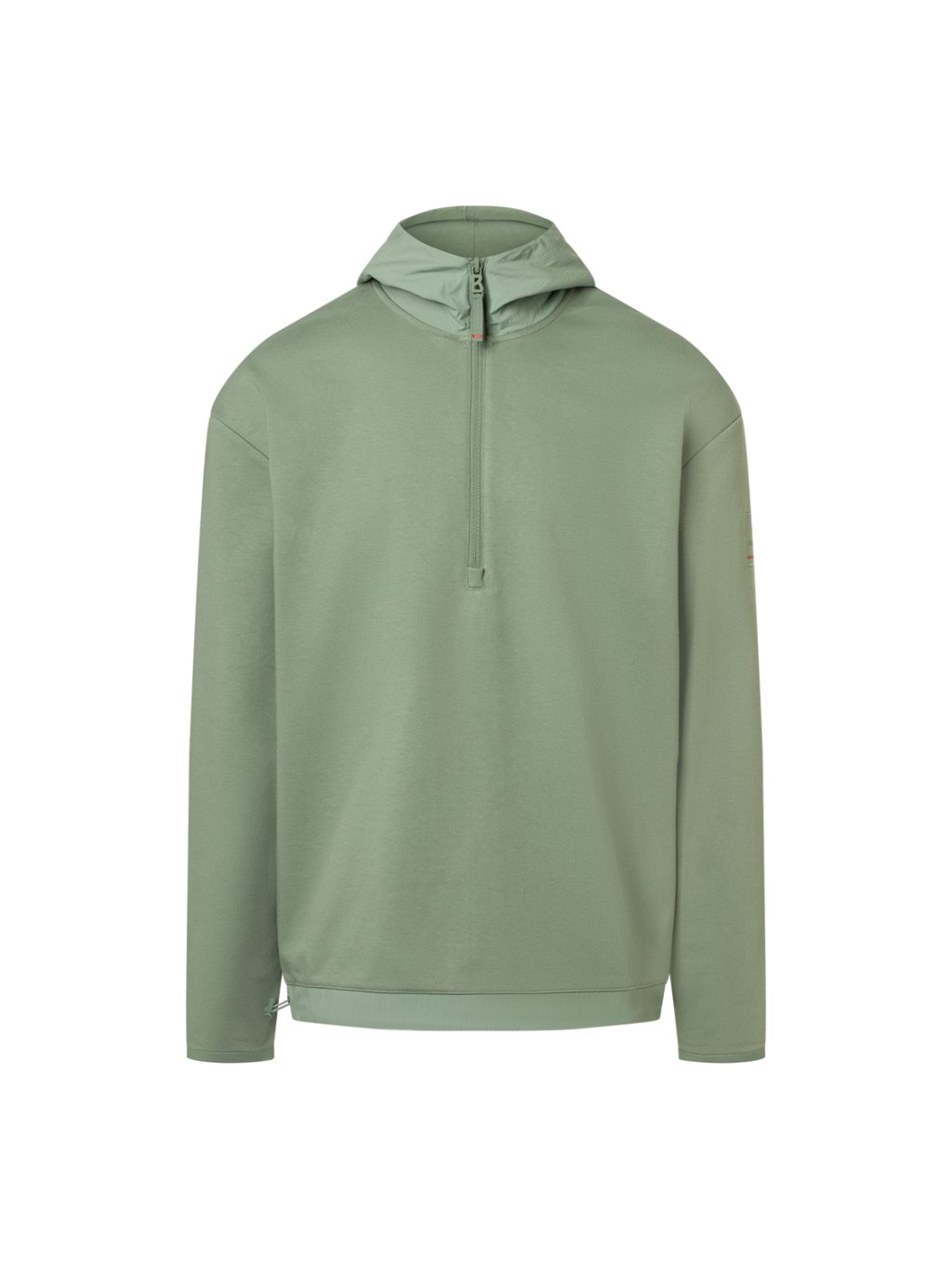 Pánska mikina s kapucňou David kombinuje pohodlie a moderný športový dizajn. Vyrobená z technickej bavlnenej zmesi s nylónovými detailmi, poskytuje príjemný pocit na pokožke a odolnosť pri nosení. Kapucňa je fixná, manžety úzke a spodný lem nastaviteľný so šnúrkou a brzdičkami pre optimálne prispôsobenie. Krátky zips s detailom „B“ dodáva mikine moderný charakter, zatiaľ čo jemné etikety a textilná nášivka FIRE+ICE na rukáve pridávajú ikonický štýl. Mikina má pravidelný strih s klesnutými ramenami, ktorý zaručuje komfort a voľnosť pohybu. Vlajka na boku dopĺňa dizajn a podčiarkuje športovo-elegantný vzhľad.