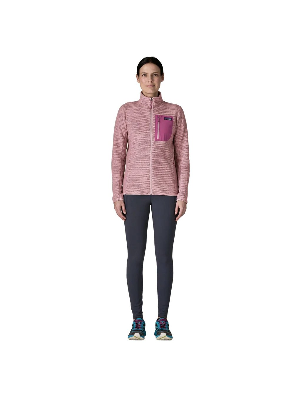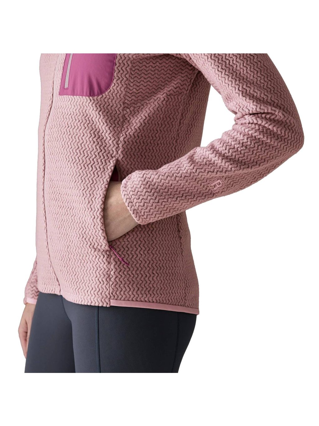 R1® Air Jacket je ľahká technická bunda z fleecu, ktorá kombinuje vysokú priedušnosť, rýchle schnutie a pohodlný priliehavý strih. Je vyrobená zo 100 % recyklovaného polyesteru s dutinkovou priadzou, ktorá odvádza vlhkosť a zvyšuje komfort pri pohybe. Zigzag-pletený vzor znižuje objem a zlepšuje ventiláciu, zatiaľ čo plne zapínací zips umožňuje jednoduché obliekanie a prispôsobenie teploty počas pohybu v horách. Off-shoulder švy sedia pohodlne pod popruhmi batohu a vrecká na zips poskytujú bezpečné miesto pre drobnosti. Quick-drying lemovanie na zadnom okraji a manžetách zlepšuje fit a trvácnosť. Bunda je vyrobená vo Fair Trade Certified™ továrni, ktorá zabezpečuje spravodlivé ohodnotenie práce ľudí, ktorí ju vyrobili. Ideálna na aktívny pohyb aj každodenné nosenie v chladnejších podmienkach.