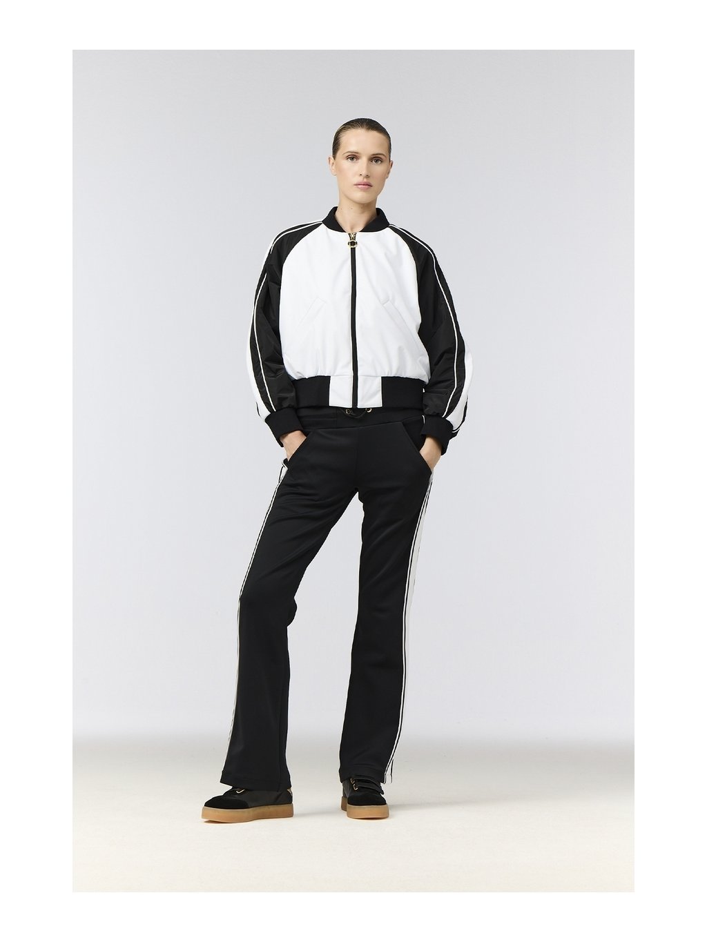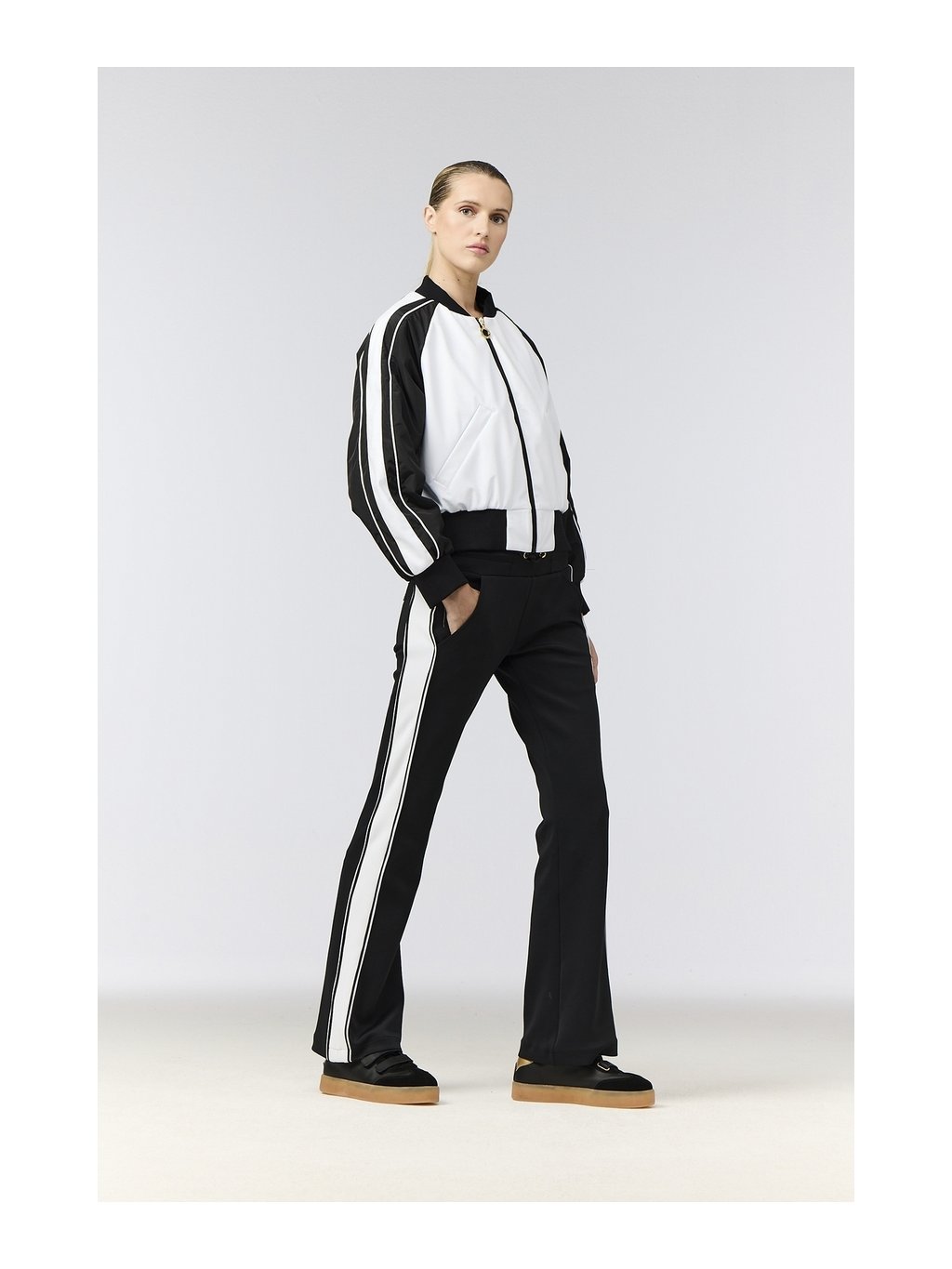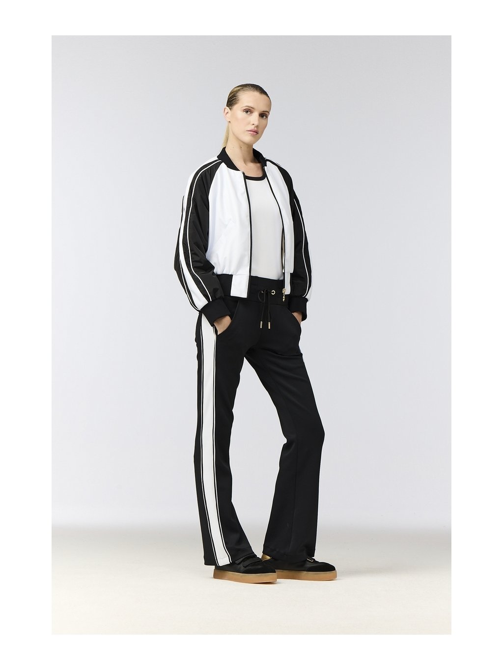 Dámske športové nohavice ELIO sú navrhnuté pre maximálne pohodlie a voľnosť pohybu. Regular fit strih spolu s rozšírenými nohavicami (flare leg) vytvára moderný športový vzhľad, ktorý sa hodí nielen na tréning, ale aj na bežné nosenie. Funkčný interlock materiál je elastický, priedušný a efektívne odvádza vlhkosť, vďaka čomu sa budete cítiť komfortne počas celého dňa. Materiál je zároveň rýchloschnúci a vybavený anti-odour úpravou, ktorá pomáha udržiavať sviežosť aj pri intenzívnom pohybe. Športový charakter nohavíc podčiarkujú kontrastné pruhy po bokoch nohavíc. Praktické predné šikmé vrecká a elastický pás so sťahovacou šnúrkou zabezpečujú pohodlné nosenie.