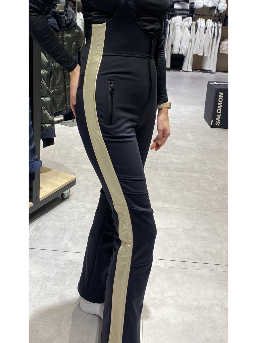 Sofshelové, štýlové lyžiarske nohavice Sportalm Venus na svetovom trhu. Nohavice sú veľmi teplé, kvalitné a navyše vďaka strihu slim fit dokonale sedia na ženskej postave. Zlaté pásové lemovanie pozdĺž celej dĺžky dodáva nohaviciam luxusný vzhľad. Vďaka materiálu 3-way stretch zabezpečujú dokonalú rozpínavosť tkaniny do každej strany a preto sa nohavice prispôsobujú každému vášmu pohybu. Kvalitný vrchný materiál je vetru odolný a vode odolný a vďaka príjemnej vnútornej látke sú nohavice navyše aj dokonale komfortné. Na tele dokonale držia vďaka trakom.