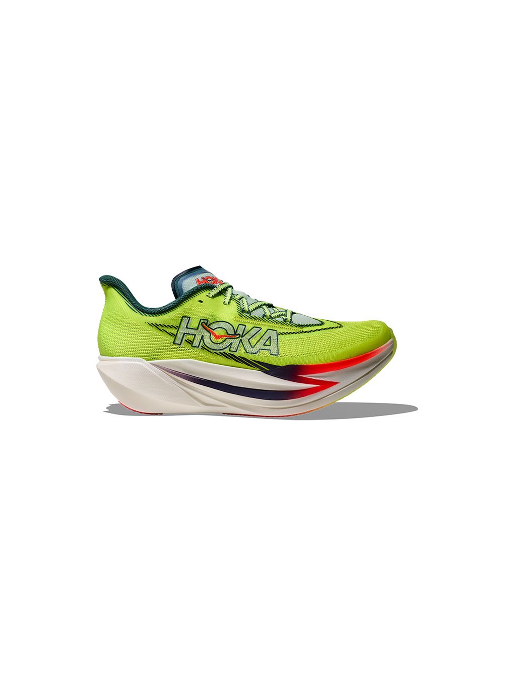 Hoka Cielo X1 3.0 je špičková karbónová bežecká topánka navrhnutá pre pretekárov a výkonnostných bežcov, ktorí chcú posúvať svoje limity a útočiť na osobné rekordy. Tretia generácia prináša ešte lepší návrat energie, vyššiu stabilitu a efektívnejší bežecký krok než jej predchodca.  Optimalizovaná karbónová doska zabezpečuje plynulý prechod z dopadu do odrazu a agresívny, ale kontrolovaný odraz. Dvojvrstvová PEBA pena v medzipodrážke ponúka mäkký dopad, vysokú pružnosť a pomáha udržať vysoké tempo aj v závere pretekov. Výrazný rocker profil podporuje prirodzený bežecký štýl a urýchľuje odraz. Ultraľahký, jednovrstvový zvršok dokonale obopína chodidlo, je maximálne priedušný a znižuje celkovú hmotnosť topánky na minimum. Pre istotu pri vysokých rýchlostiach je topánka vybavená rozšírenou platformou, technológiou Active Foot Frame™ a upravenou geometriou päty, ktoré zvyšujú stabilitu bez obmedzenia dynamiky. Strategicky umiestnená guma na podrážke poskytuje spoľahlivú trakciu na asfalte.