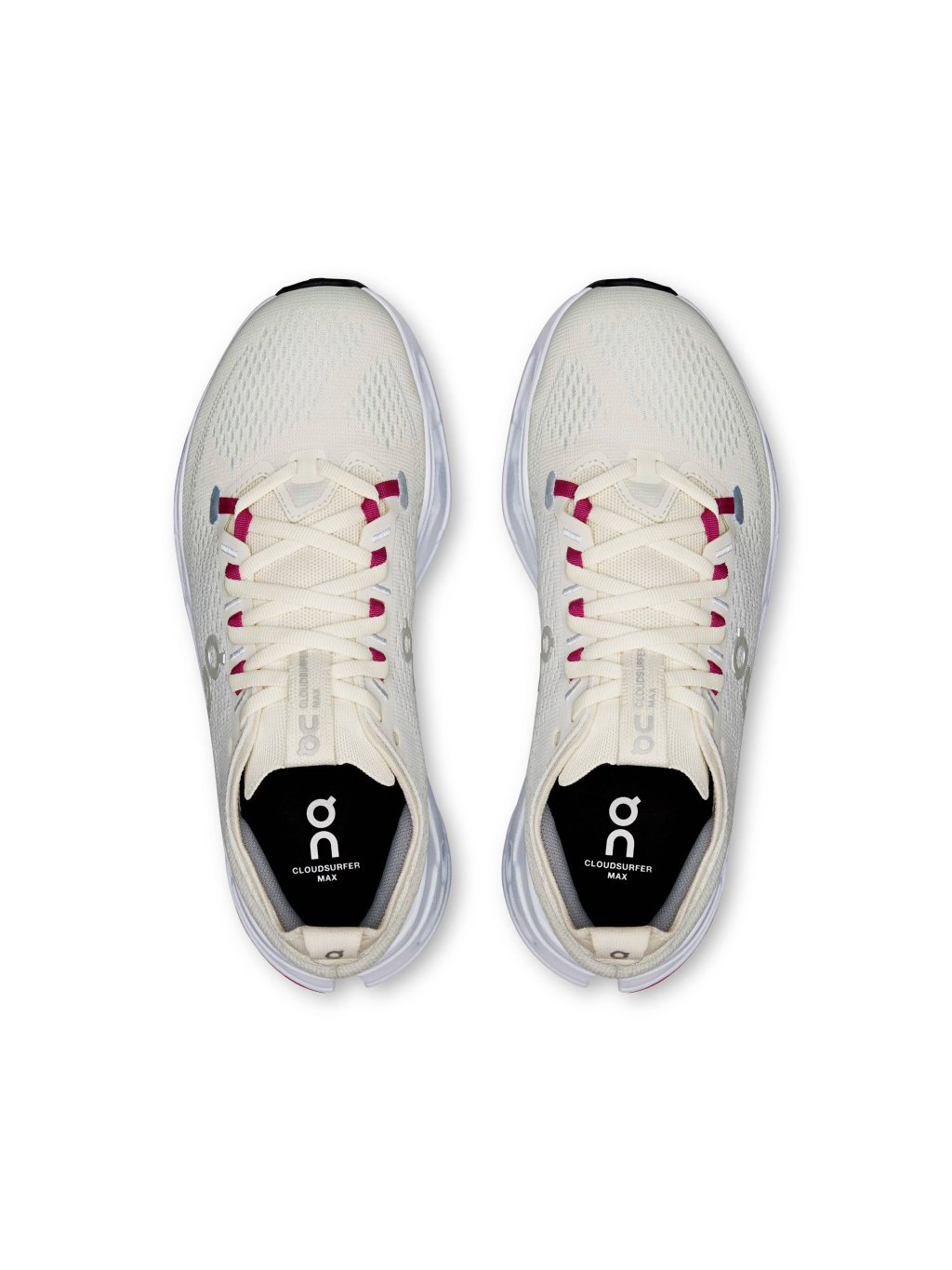 On Cloudsurfer Max je cestná bežecká obuv s maximálnym tlmením, určená pre plynulý, pohodlný beh na dlhé vzdialenosti. Vďaka dvojitej vrstve technológie CloudTec Phase® v kombinácii s penou Helion™ ponúka mimoriadne mäkký došľap a prirodzený prechod z päty na špičku. Zvršok z technickej sieťoviny spolu s plochým pleteným golierom a vylepšeným jazykom poskytuje výbornú priedušnosť, komfort a stabilitu počas celého dňa. Elegantný dizajn doplnený o kontrastné detaily zároveň dodáva obuvi štýlový vzhľad. Vďaka pogumovanej podrážke má Cloudsurfer Max spoľahlivú trakciu aj na tvrdších cestných povrchoch. Ideálna voľba pre bežcov, ktorí hľadajú kombináciu mäkkého dopadu, moderného dizajnu a výkonnosti pri dlhých behoch.