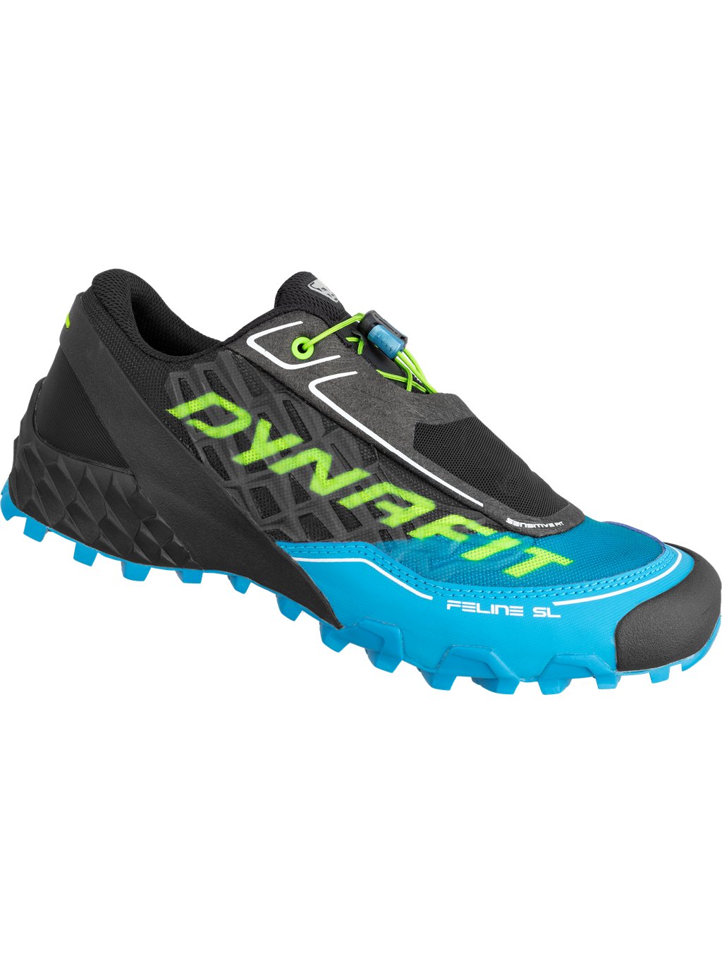 Trailové bežecké topánky FELINE SL sú skutočnou „univerzálnou zbraňou:“ S hlbokými a agresívnymi výstupkami podrážky POMOCA zaisťuje Feline Sl trakciu aj na veľmi mäkkom a blatistom teréne. Systém rýchleho šnurovania Feline SL je kombinovaný s ochranou technológie neviditeľného šnurovania. To umožňuje rýchle a presné nastavenie podľa vlastných potrieb. Ochranný strečový látkový poťah systému neviditeľného šnurovania navyše chráni pred nečistotami a kamienkami. Ako obvykle, FELINE SL je vybavený technológiou päty - dizajnovým prvkom, ktorý zlepšuje priľnavosť v päte. FELINE SL je vybavený všetkou touto technológiou a predstavuje kompletný balík pre vaše multišportové dobrodružstvá.