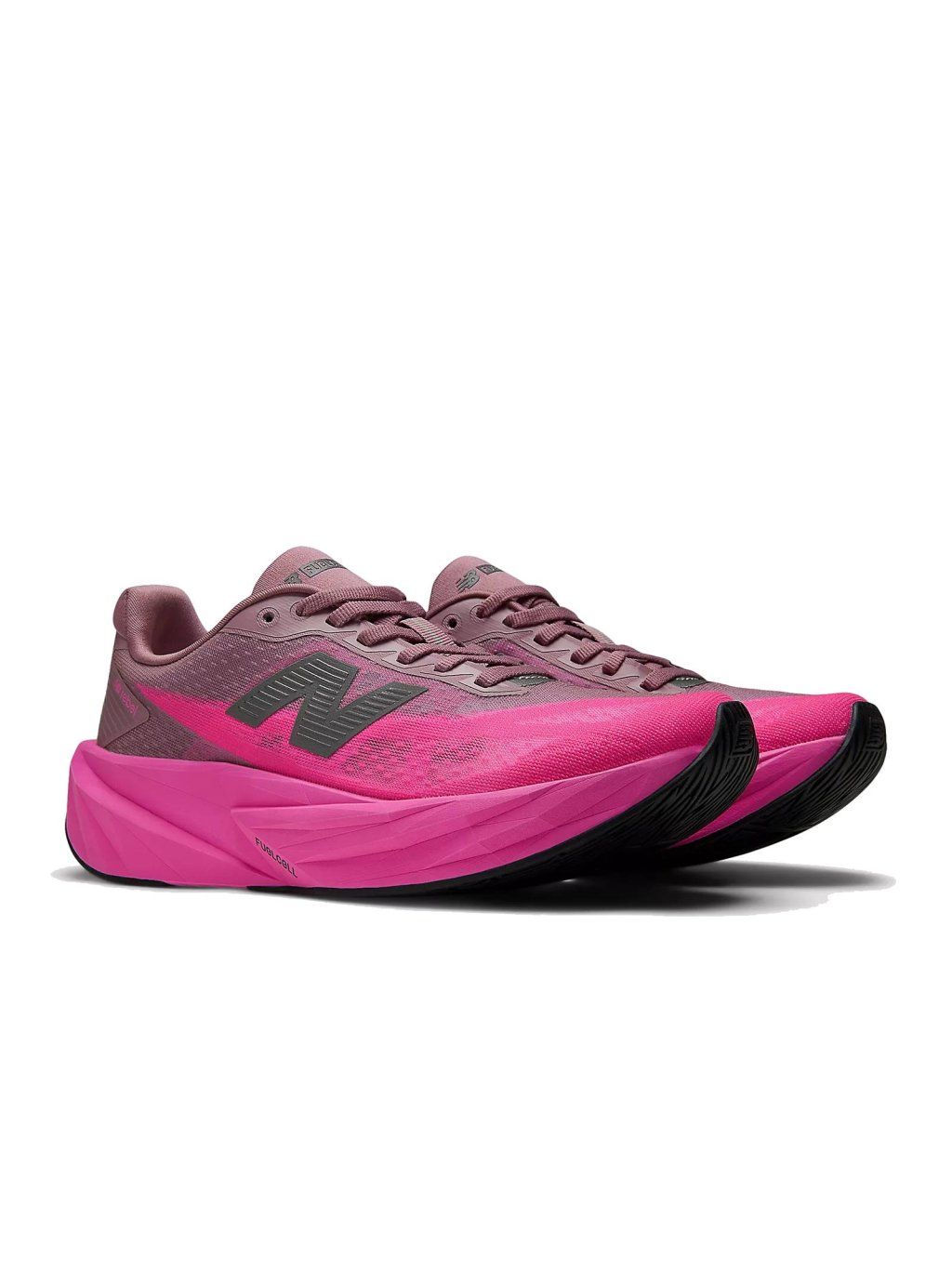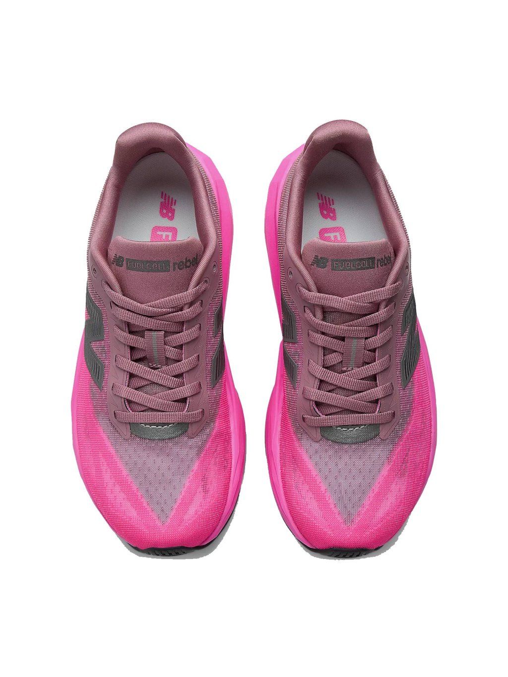 Dámska bežecká obuv New Balance (FuelCell Rebel v5) je navrhnutá pre bežkyne, ktoré hľadajú rýchlosť, nízku hmotnosť a dynamický odraz pri behu na tvrdom povrchu.