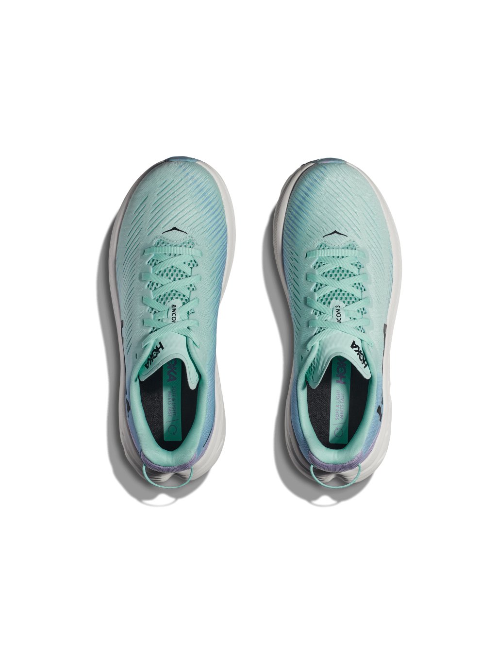 Bežecké topánky Hoka One One Rincon 3 predstavujú zatiaľ najlepší pomer tlmenia a hmotnosti. Prichádza s tenším tvarovaným jazykom, menšou slučkou na obúvanie a ešte priedušnejším zvrškom ako jeho predchodca. Rincon 3 sú ľahké topánky s výborným tlmením, vhodné najmä na preteky v cestnom behu, ale aj tréning. Zvršok je vyrobený z ľahkej a priedušnej sieťoviny, ktorá je vyrábaná recyklovanými vláknami a tak je výroba týchto topánok šetrná k životného prostrediu. Bežcovi ponúka neutrálny nášľap s ľahkým dopadom i odrazom vďaka medzipodrážke z EVA peny. Podrážka je vyrobená strategicky rozmiestnenými gumovými zónami, ktoré zabezpečujú stabilitu na akomkoľvek povrchu. Topánka je extra ľahká, váha topánky je len neuveriteľných 204g.