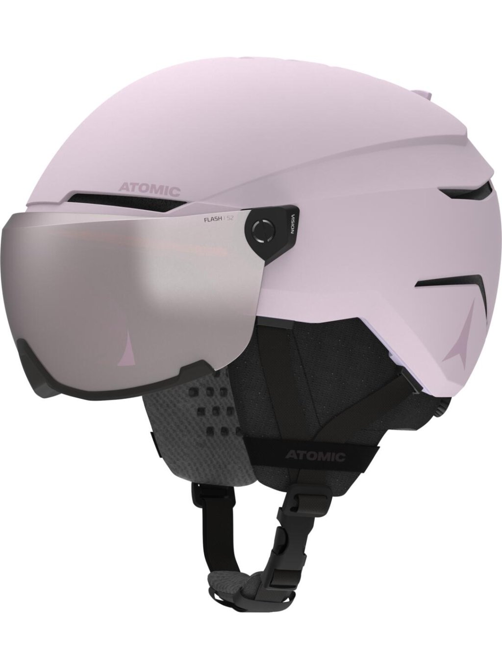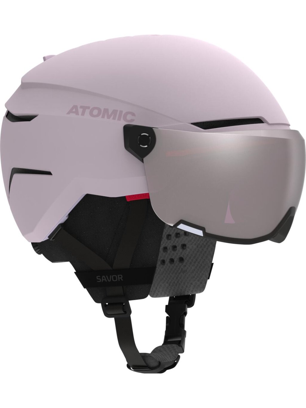 Juniorská prilba Atomic Savor Visor JR, ktorá kombinuje kvalitnú prilbu a okuliare v jednom. Ponúka najvyšší komfort vďaka Live Fit, ktorý sa prispôsobí ich hlave, priliehavému Ear Fit systému, ktorý chráni pred vetrom, a výškovo nastaviteľnému 360° Fit systému. Z hľadiska bezpečnosti je prilba postavená na unikátnom jadre Holo Core, ktoré ponúka až o 30 % vyššiu ochranu proti nárazu, než vyžadujú priemyselné bezpečnostné normy, a zároveň udržuje prilbu ľahkú a chladnú. Visor je nastaviteľný, takže deti môžu pod ním nosiť okuliare.