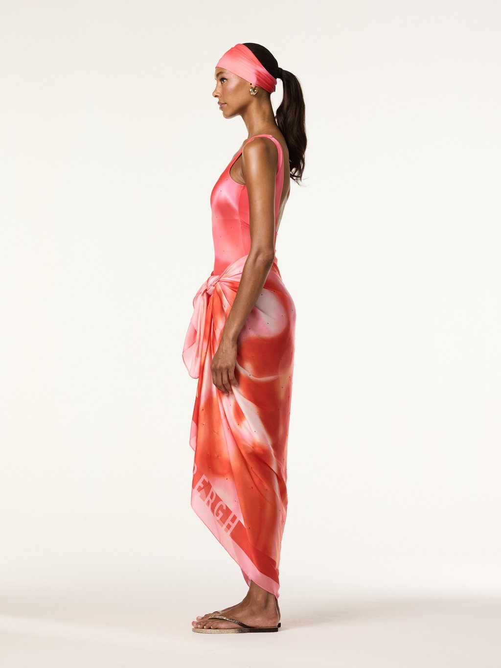 Pareo Lavish je elegantný a očarujúci doplnok, ktorý okamžite zaujme svojím dizajnom. Vyrobené z kvalitného tkaného šifónu, toto pareo je ľahké a príjemné na nosenie, ideálne pre teplé letné dni. Celoplošný potlačový vzor Lumina je doplnený o nádherné strass kamienky, ktoré dodávajú kúsok luxusný a šik vzhľad. Tento univerzálny kúsok je ideálny na pláž alebo k bazénu, ale aj ako doplnok k letnému outfitu na každú príležitosť.