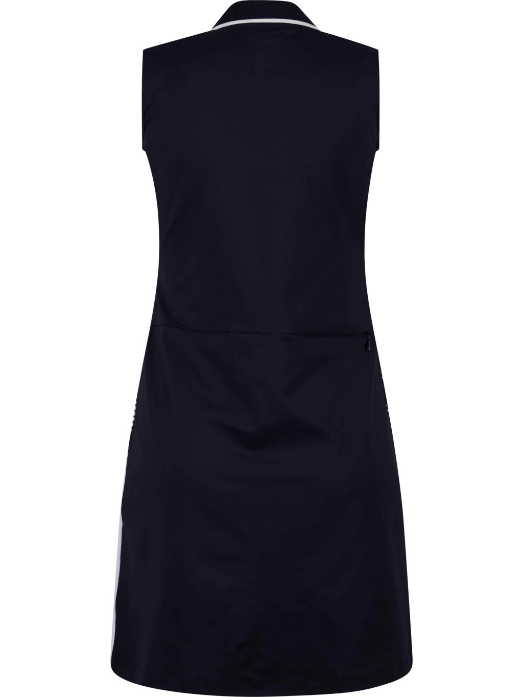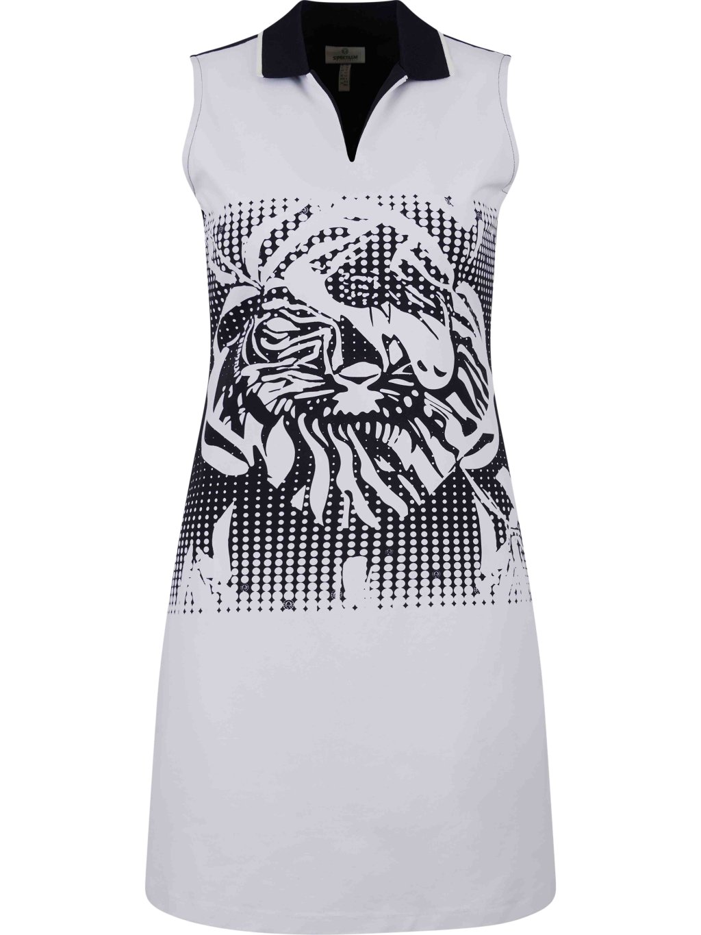 Tieto bezrukávové športové šaty sú navrhnuté pre aktívne ženy, ktoré hľadajú spojenie športového štýlu a pohodlia. Vyrobené sú z kvalitného piqué dresu kombinovaného s jemným dresovým materiálom, ktorý je ľahký, pružný a priedušný. Moderná veľká grafická potlač na prednej strane dodáva šatám výrazný a športovo-štýlový vzhľad. Šaty majú priliehavý, dobre padnúci strih, okrúhly výstrih s malým rozparkom vpredu a praktické detaily ako skrytý zips na zadnej strane v páse pre jednoduché obliekanie. Tieto šaty sú ideálne na šport, aktívny voľný čas alebo ako štýlový športový outfit na každodenné nosenie.