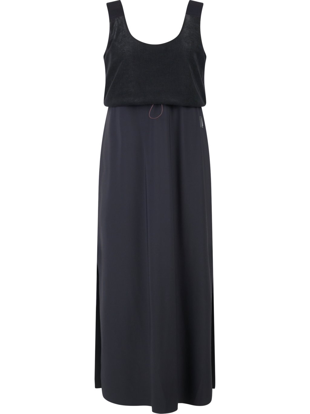 Tieto moderné šaty z kolekcie ULLI spájajú pohodlie s aktuálnymi trendami. Vyrobené z kombinácie polyamidu a elastanu, s kvalitným jersey a rebrovaným materiálom, dodávajú ľahkosť, pružnosť a sú príjemné na nosenie. Voľný strih v empire štýle vytvára nadčasovo ženskú siluetu, zatiaľ čo hlboký okrúhly výstrih a bezrukávové prevedenie s jemným elastickým logom na ramenných vložkách dodávajú modelu moderný charakter. Sukňová časť šiat má otvorené okraje (open-edge finish) a vysoké bočné rozparky, ktoré podporujú pohodlie a dynamiku pohybu. Skrytá šnúrka pod empire švom umožňuje jemné prispôsobenie tvaru šiat. Decentný ULLI logo transfer na ľavej strane sukne pod empire švom dopĺňa elegantný branding detail. Čiastočné podšitie zvyšuje komfort pri nosení a udržuje tvar šiat.