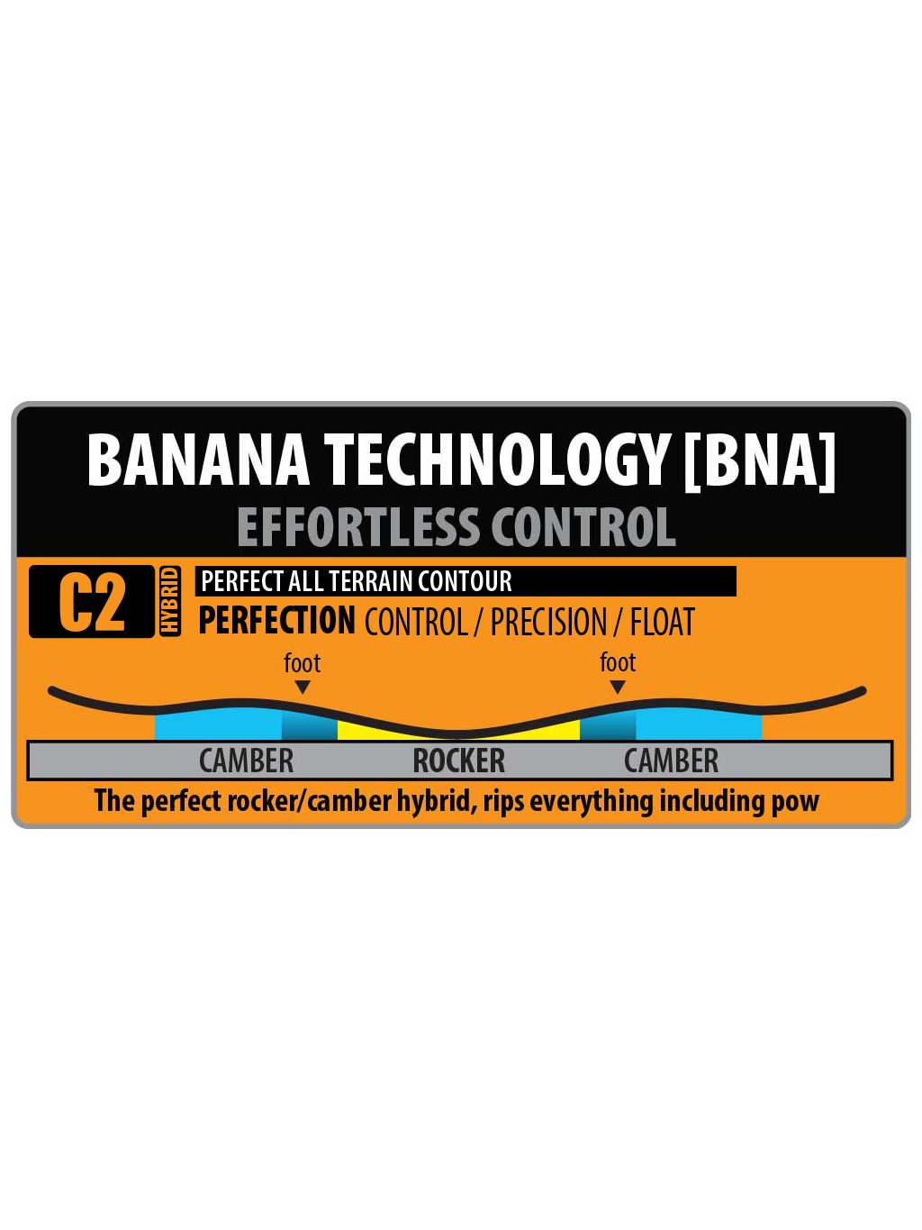 - prehnutie: Hybrid C2 - na tomto prehnutí spolupracovala značka Lib Tech s Travisom Rice a spoločne vytvorili dobre vyvážený profil na all-mountain jazdenie. Stredný rocker medzi viazaním s camber profilom od viazania ku kontaktným bodom má za následok plný kontakt a kontrolu v akýchkoľvek podmienkach - můžte plávať v prašane, rezať zatáčky na upravených svahoch a jibbovať na prekážkach s presnosťou a dôverou.