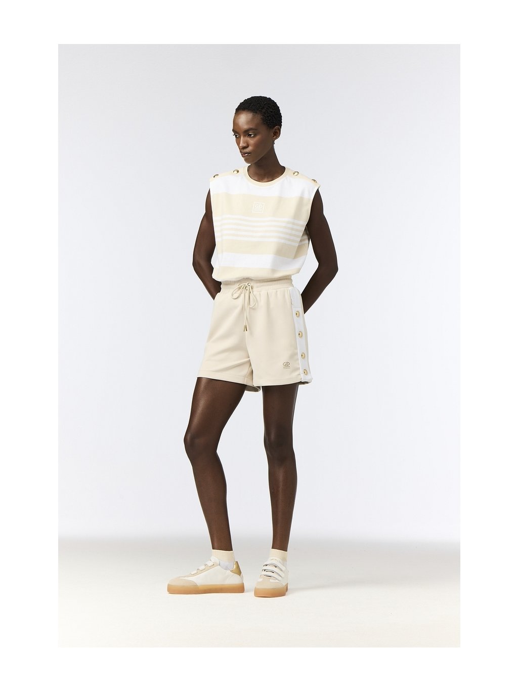 Športové šortky VANNA ponúkajú pohodlný strih, funkčný materiál a štýlové bočné detaily so zlatými patentmi. Ideálne na šport, voľný čas aj letný athleisure outfit.