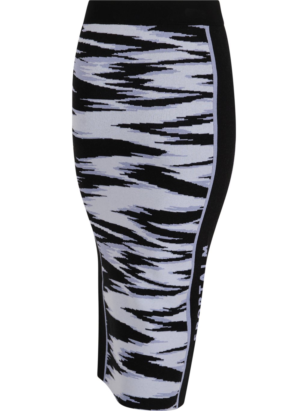 Ženská a štýlová. Midi sukňa Seraina z tenkej viskózi s elastánom v kombinácii lesklého materiálu zaručuje príjemné nosenie, prispôsobenie sa telu a pevné uchopenie. Pozornosť púta 3-farebná celoplošná potlač, ktorá dodáva sukni dynamický a moderný nádych.