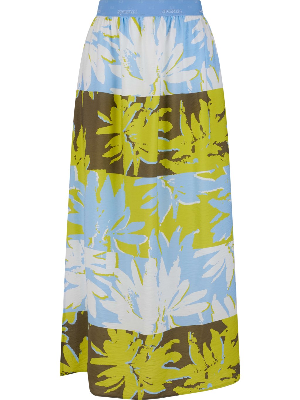 Táto elegantná maxisukňa z kolekcie Summer 2026 – Summer Splash kombinuje ženskú eleganciu s pohodlným športovým twistom. Vyrobená z ľahkej, mierne krepujúcej viskózy ECOVERO, pôsobí vzdušne, mäkko a príjemne sa nosí počas teplých letných dní. Voľný, splývavý strih umožňuje pohyb a dodáva sukni jemný, elegantný švih. Elastický pás s logom Sportalm zaručuje pohodlné prispôsobenie postave a dodáva sukni moderný detail. Dominantným prvkom je kvetinový print v prúžkovom usporiadaní, ktorý vytvára hravý letný efekt a podčiarkuje športovo-elegantný charakter modelu. Maxisukňa je ideálna na kombinovanie s topmi, tričkami, blúzkami alebo ľahkými mikinami – perfektný kúsok pre dynamické letné outfity plné pohodlia a ženského štýlu.