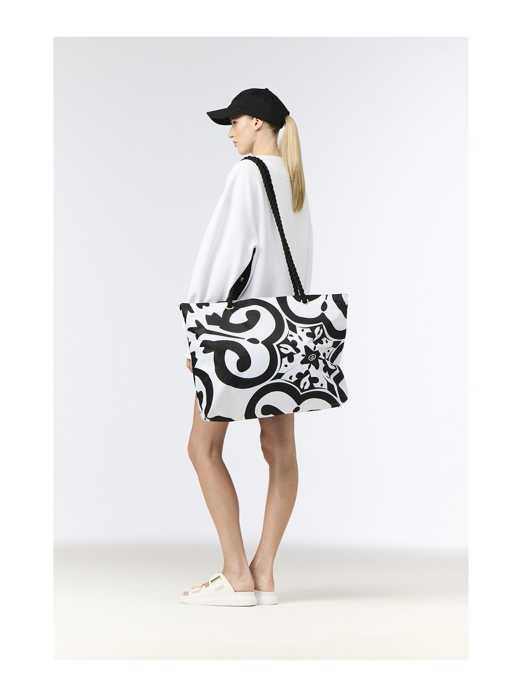Shopper taška ISLAIRE s výraznou celoplošnou potlačou je štýlový a praktický doplnok na každý deň. Vďaka priestrannému dizajnu, zapínaniu na zips a námorníckym popruhom je ideálna na nákupy, cestovanie aj voľný čas.