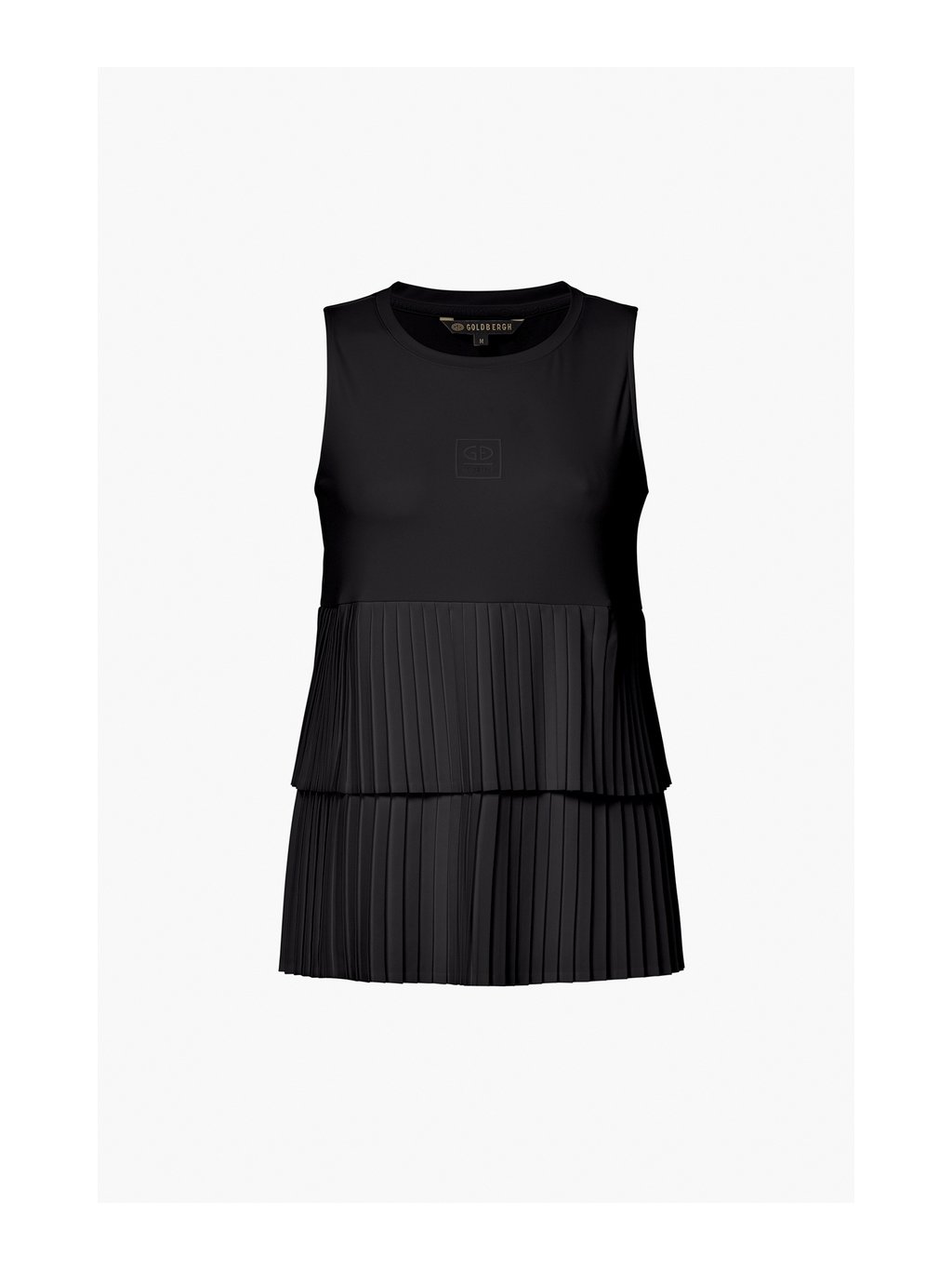 Top BELLAVITA je štýlový a zároveň funkčný kúsok, ktorý kombinuje športový dizajn s elegantnými detailmi. Horná časť je vyrobená z jemného jersey materiálu s funkčnými vlastnosťami, ktoré zabezpečujú efektívny odvod vlhkosti, rýchle schnutie a úpravu proti zápachu. Spodnú časť tvoria dvojvrstvové plisované panely z ľahkej tkaniny, ktoré dodávajú topu dynamický a ženský vzhľad. Tento detail zároveň poskytuje voľnosť pohybu a vzdušnosť počas nosenia. Prednú časť dopĺňa gumová potlač loga Goldbergh, ktorá sa nachádza aj na hornej časti chrbta. Jemný tkaný štítok na boku podčiarkuje prémiový charakter modelu. Regular fit strih zabezpečuje pohodlné nosenie a prirodzené prispôsobenie sa postave.