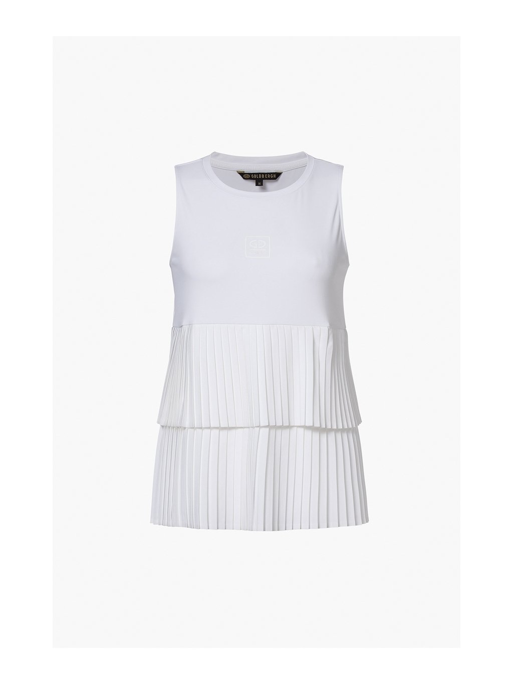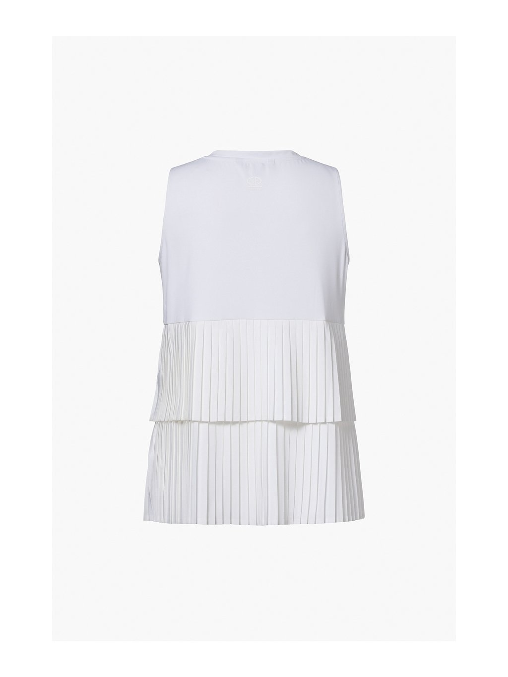 Top BELLAVITA bez rukávov s elegantnými plisovaným prevedeím prináša spojenie športového komfortu a ženského štýlu. Ľahký funkčný materiál zaručuje pohodlie počas celého dňa.