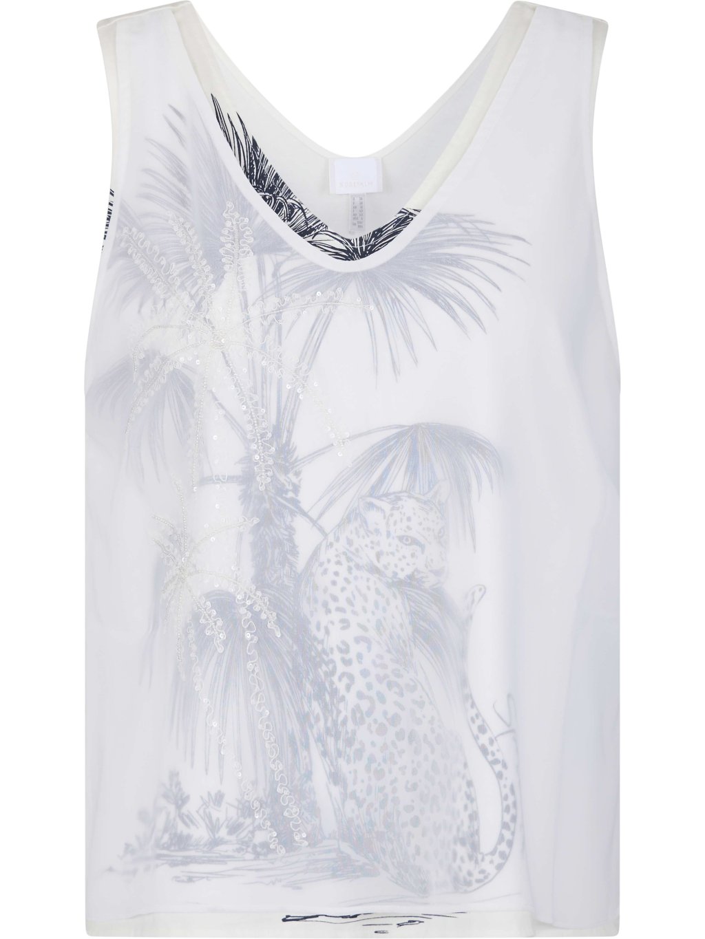 Toto štýlové tričko Vitas prináša svieži letný vzhľad v modernom prevedení. Je vyrobené zo 100 % bavlny, ktorá je príjemná na dotyk, priedušná a ideálna do teplých dní. Rovný strih zabezpečuje pohodlné nosenie a nadčasový vzhľad. Výstrih do V opticky predlžuje siluetu a dodáva modelu ženský nádych. Predná časť je dvojvrstvová – vrchnú vrstvu tvorí jemný mesh, pod ktorým sa nachádza výrazný leo print, čím vzniká zaujímavý vizuálny efekt. Palma vyšitá na prednej strane podčiarkuje letnú atmosféru modelu. Bočné rozparky zvyšujú komfort pri pohybe a zadný transfer v strede chrbta dopĺňa celkový dizajn moderným detailom. Ideálne tričko na kombinovanie s džínsami, šortkami či sukňou pre svieži mestský look.
