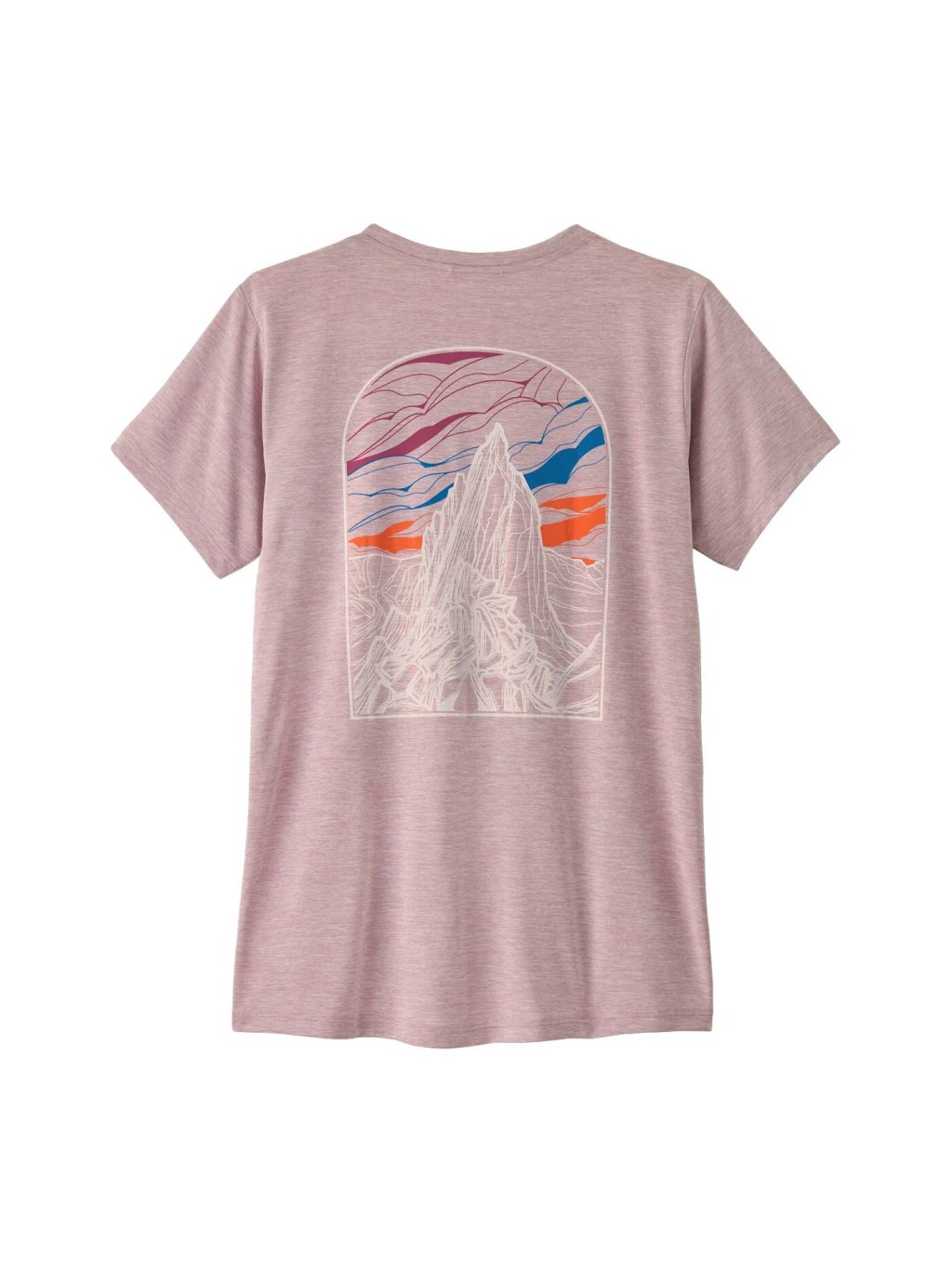 Dámske technické tričko Women's Capilene Cool Daily Shirt spája funkčný výkon s originálnou grafikou Cloud Crag od Vernan Kee, ktorá zobrazuje masív Fitz Roy nad oblakmi. Ľahký, hodvábne jemný materiál príjemne chladí aj v horúcich dňoch, rýchlo schne a efektívne odvádza vlhkosť.