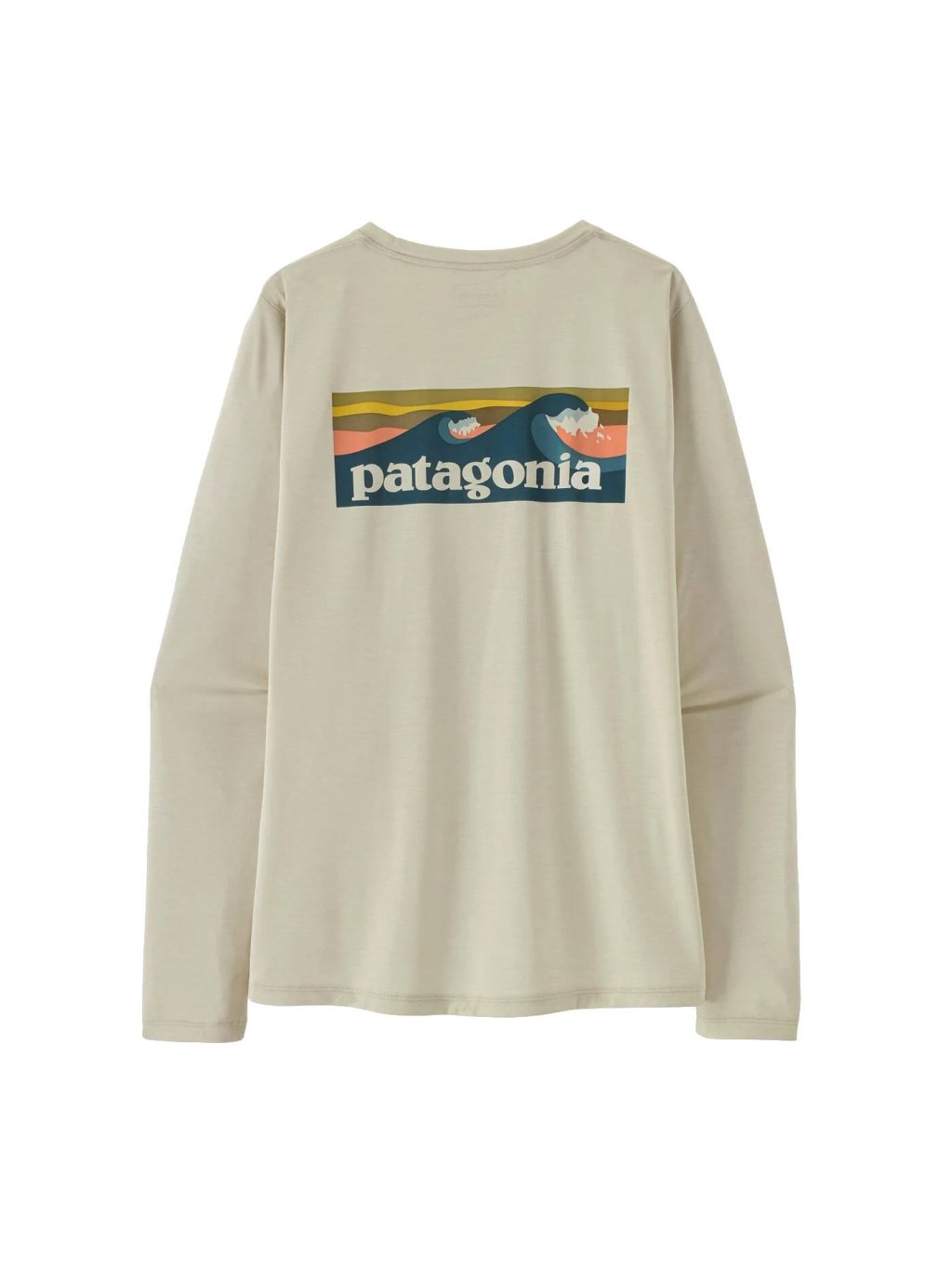 Patagonia tričko L/S Cap Cool Daily Shirt - Boardshort Logo W dyno white