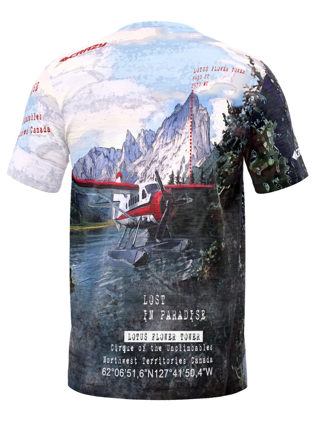Tričko Crazy Legend s celoplošnou potlačou s kreatívnymi vzormi a exkluzívnymi fotografiami, svieže a priedušné, perfektné tričko na trekking a voľnočasové aktivity do letných parákov. Je vyrobené z prírodného Tencelu a Polyesteru v strihu regular fit s kontrastnými farebnými bočnými švami.